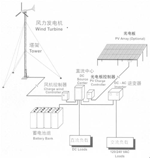 風(fēng)光互補(bǔ)發(fā)電原理圖如下:
